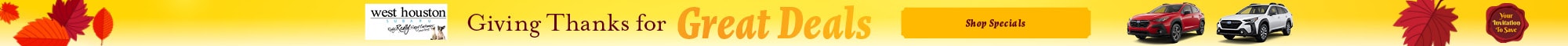 Come visit our convenient location in Houston to check out the new Subaru models and take advantage of competitive Subaru financing options. Our expert staff can help you find the right car or SUV to fit your lifestyle and budget. Browse our new Subaru inventory online, and then visit West Houston Subaru for more info.