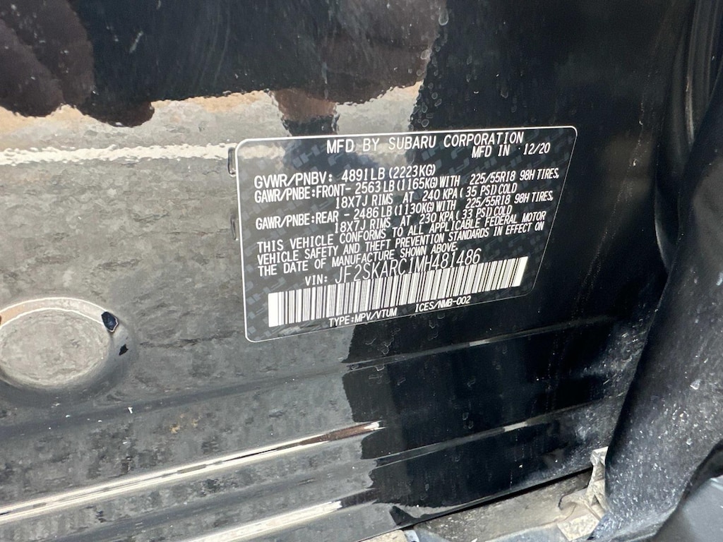 Tires: 225/55R18 98H All-Season