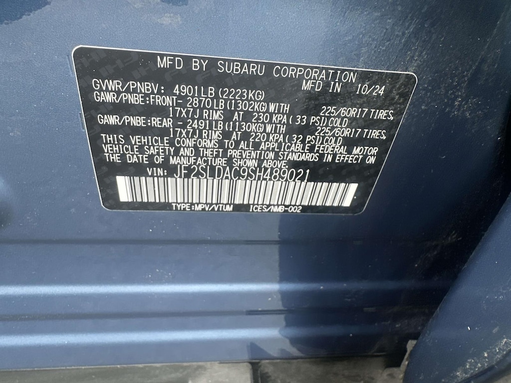 Tires: 225/60R17 99H All-Season