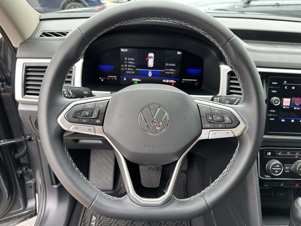 The Atlas has an infotainment system that is easy to use and intuitive, and it allows for swiping and pinch zooming. Apple Car Play is awesome! Surprisingly, some manufacturers have not integrated this feature at this time. The digital instrument panel has a very nice, modern look, and it offers 5 or 6 different views. One of the really cool things about the Atlas- you can display the nav map in the middle of the instrument panel. Additionally, you can make the map bigger and the gauges smaller, which allows you to see more map detail- a really nice option. The car even has an altimeter, which is really cool to me (I’m a pilot by trade). Not so much for my wife…